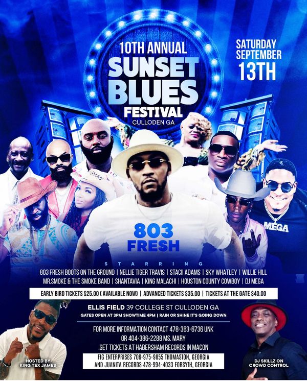 Join us for the 10th Annual Sunset Blues Festival, a vibrant celebration designed for grown folks who want to enjoy a memorable experience! This year features a star-studded lineup of artists, promising an unforgettable atmosphere.
